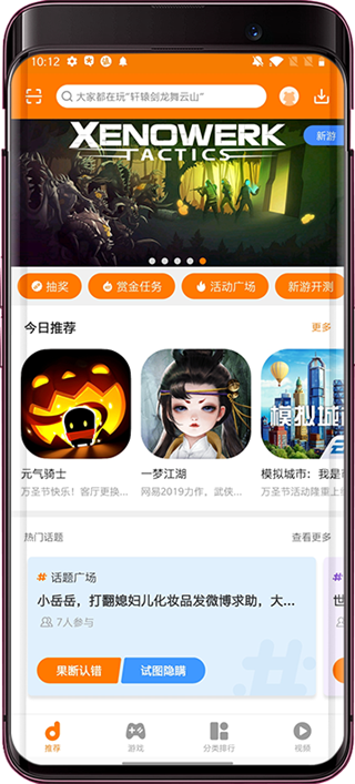 1、打开进入软件首页,有为各位玩家推荐的游戏;