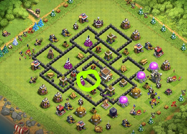 这种阵如果我们劈掉白圈中的防空然后红线下兵,吹风机就会把大部队吹偏,从而绿圈的防空就能不停输出