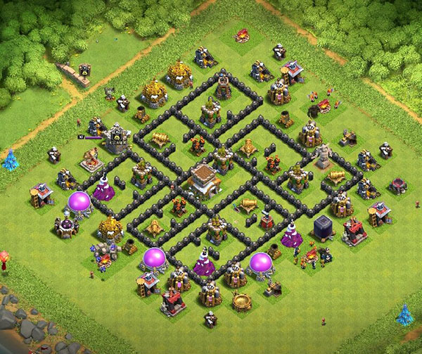 这阵的防空相距不远,且各防空间没有血量厚的建筑阻挡,带闪电劈掉一防空后一瓶狂暴即可带走剩下的防空