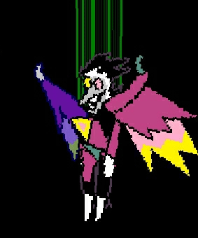 接下来就是我们的最终boos,——Spamton。这个就是之前待在垃圾桶中的神秘人,他趁玩家打冰封线的乱子去城堡的地下室偷取武器,然后成为了赛博世界的新统治者,便阻止玩家关掉黑暗喷泉