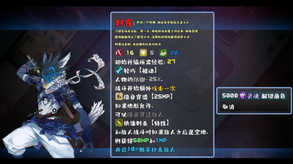 2、在这里可以查看每个角色不同的属性、专属技能和特性,购买之后就可以点击切换了