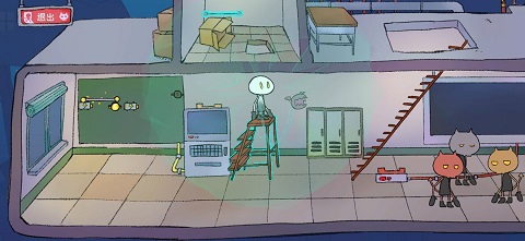 在下一关把那个椅子给拉过去,把上面那个(电线?)拉下来,连接下电路,电脑上会爆东西,把他拖到地上电话上就可以了