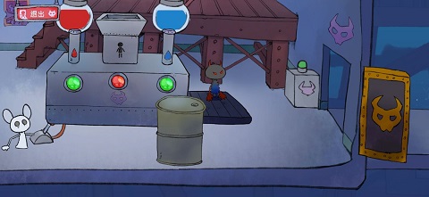 下一关让兔子黑化,然后你可以拖拽东西了,把椅子拖过去,拽拉环开门