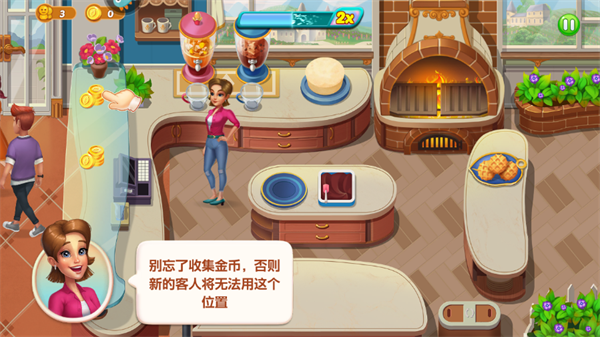 9、订单完成以后要注意收集桌上的金币,不然新的顾客将无法使用这个位置;