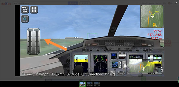 玩家将鼠标点击中间的仪表,向上垂直移动让中间的数值为负数,这时飞机向下飞行。
