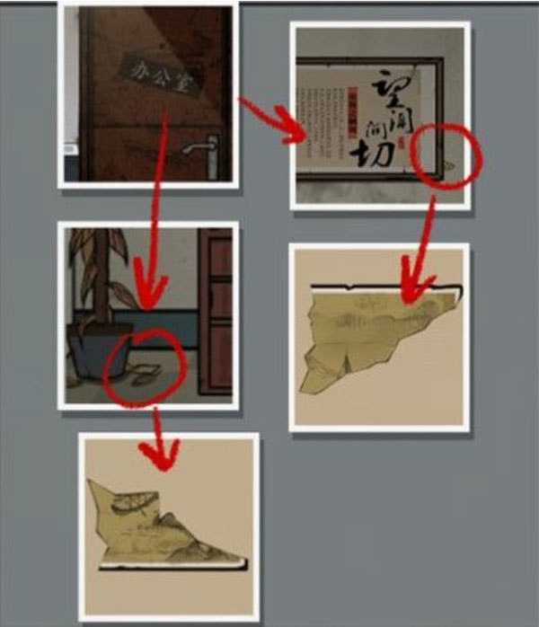 16、将5个金属片放到墙壁的机关里,打开机关,获得办公室钥匙。