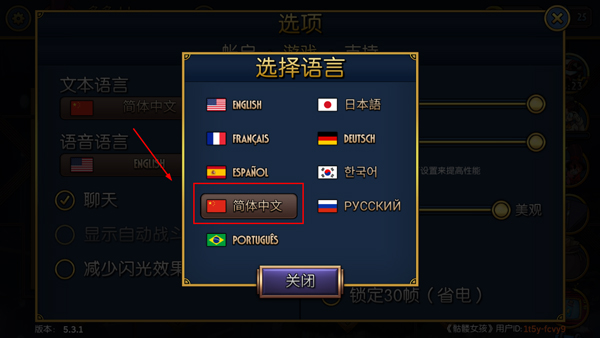 3、最后选择语言为简体中文,然后等待一会,游戏语言就调成中文了。