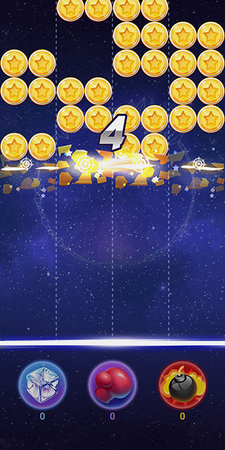 5、炸弹的名称叫做全屏爆炸,效果是全屏球球清除一次,同时屏幕上还会显示炸弹爆炸的特效,这也是游戏中最强力的一种道具了。