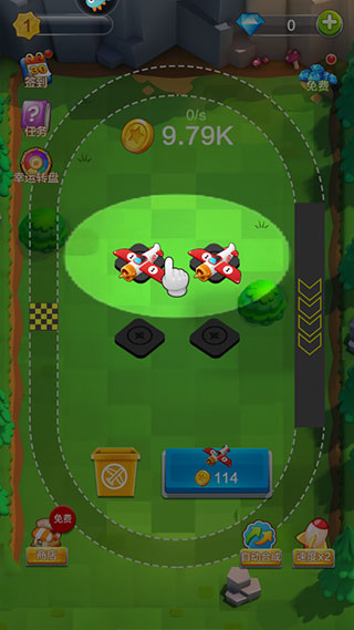 1、开局呢,我们先购买飞机,只有飞机买的多了,我们才能有几率获得彩色飞机。