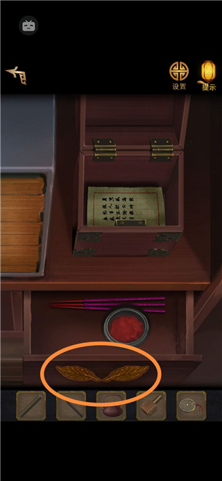 3、回院子往右走,地上捡个荷包,获得钥匙,回去开桌子上的盒子,获得一把钗子。