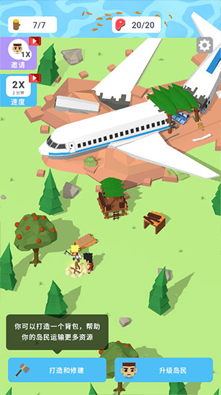 1、在岛上开荒种地,播种生存所需要的各种食物吧。2、解锁斧头,砍伐树木,建造房屋,制作工具。