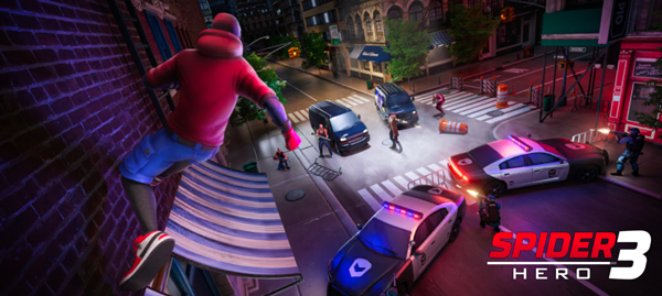2、摇荡的效果,一根细长细长的蜘蛛丝攀爬在高楼大厦之上,从蜘蛛侠的手中延伸,带有热血的刺激玩法,激情对抗内容,都在这里,全新升级,物理玩法。