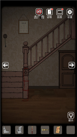 6、接着玩家来到电视机场景,打开第一个柜子可以获得带血的到,玩家回到楼梯,使用刀划开绳子,将符纸拿起,再将大厅的灯打开,拿到鸡尾酒的配方