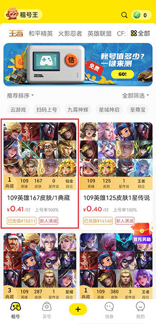 1、打开租号王app,在租号界面中选择你要租号的游戏