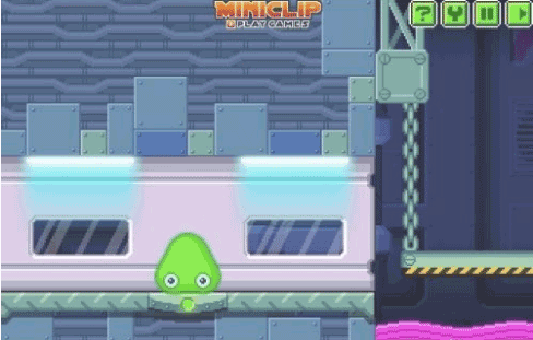 第3关:这一关开始吞噬液体可以将柱子撞断,然后尽量躲避那些激光,可以躲避在石头下面跳跃的时候多观察激光的路线;