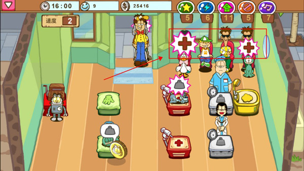 1、在游戏中会出现很多道具例如有钱的符号道具,闪电符号道具,五角星符号道具及禁止符号道具和音乐符号道具,其中呢钱的符号道具可以帮助玩家增加金币收入,闪电符号道具可以增加员工的移动速度提高工作效率,五角星符号道具可以将顾客的宠物拖到任何的一个电台,禁止符号可以在非常多的顾客在店外排队情况下使用,这样顾客将无法进入医院,音乐符号道具也是可以在顾客在店内坐着排队的情况下使用用于安抚顾客情绪,顾客不会生气。