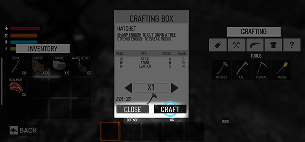 3、要在岛上生存首先我们得有工具,所以我们需要制造一把简单的斧头;