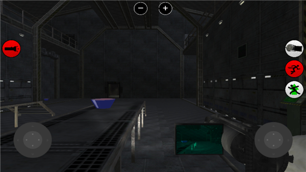 4、正式进入游戏后,左边为控制方向健,右边则控制视角,其中的按钮依次为灯开关,摄像机放大,人物的跳和跑健。