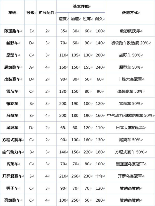 2、香蕉车:有利于比赛中拿到更多的研究值,以及提高车子和零件的经验!