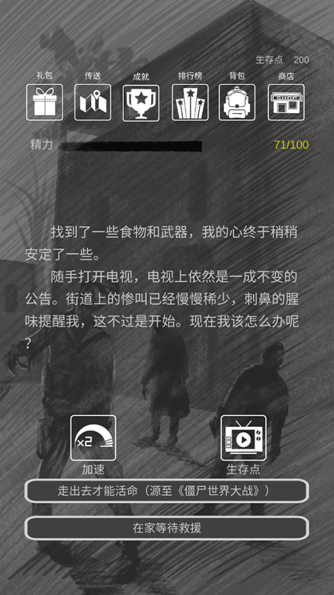 5、面对未知的恐惧,你是选择走出去还是在家等待救援呢?你的每一个都决定了之后的发展方向。