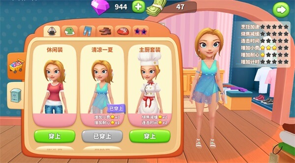 快速烹饪:可以让食物制作瞬间完成,有很大的用处,对于很多关卡都用很大的帮助。