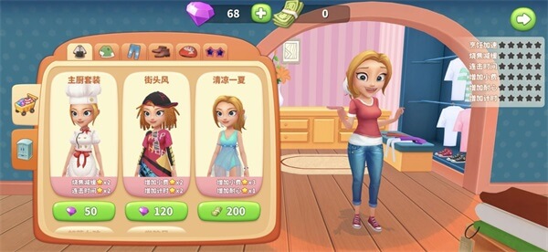 本座中的小姐姐花了我们非常多的心思,不仅可以做饭,还可以换装。每一套服装都可以对人物进行增强,得到更多的关卡结算奖励,或者降低游戏的难度。