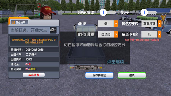 7、可以调节镜头渲染、影子、画质、操控方式、档位设置和车流密度等,保存并退出就能完成更改;