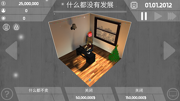 3、开局我们只是一个小公司,只有一个员工和一个小办公室外加2500万的启动资金。