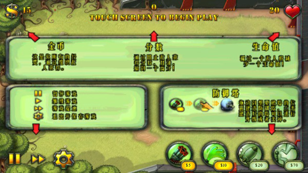 3、坚守阵地游戏界面会很清楚的标明哪块地是干嘛的,图标是什么作用,让玩家尤其是初次玩的一目了然。