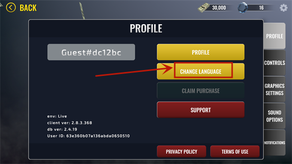 2、在设置界面点击“CHANGE LANGUAGE”进入语言设置板块