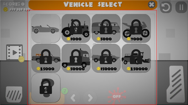 2、以及按黄色按钮可以选择车的款式,如果你有足够多的金币的话: