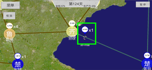 游戏有海军和陆军。海军只能在蓝色水路上移动,陆军都可通行,但水上战斗力大幅下降。