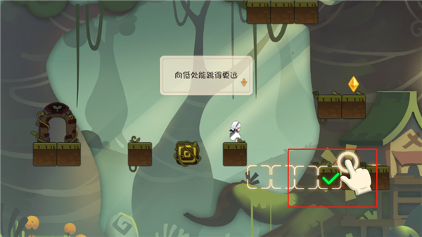 4、但是需要注意的是,艾米最多知道跳三格,所以,玩家需要移动左上角的符文,将它移动到空中,让艾米能够顺利前进;