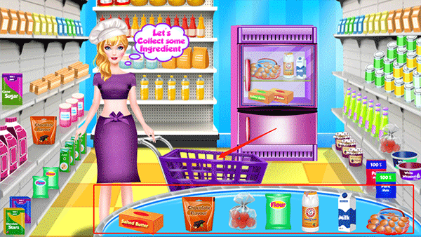 2、下方桌子上会提供需要的材料样式,从货架上找到相同的材料放入购物篮