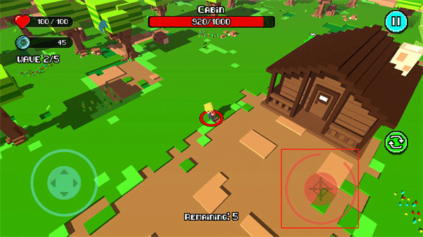3、通过滑动右下角的按钮来进行攻击,滑动的方向就是射击的方向。