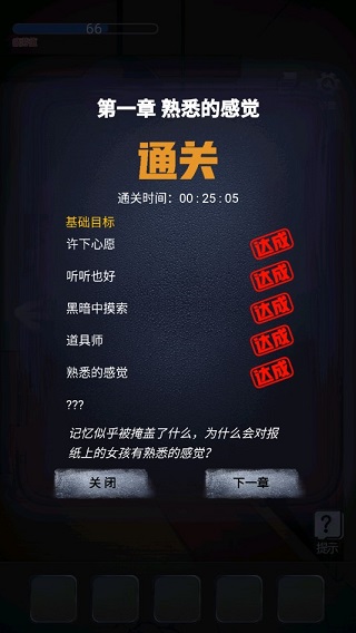 ...以上就是小编为你整理的第一章通关攻略,后续的解谜过程还需要玩家亲自体验才有意义,与此同时,如果此间有遇到问题难以解决,那么点击提示可以免广告获取答案哦~