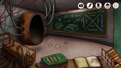 哦?左边的一定就是传说中的时间机器了,黑板上写了一定的公式,右边的是什么呢?看着这分布规律的红圈和特意标注的红色箭头,你明白了——真相只有一个!凶手就是你!(不好意思串台了。。。),于是你又使用了游戏的截图/笔记功能记下了黑板上的图像,尤其是,你没有忘记标注红色箭头的位置。