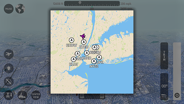 4、打开右上角地图,选择要前往的机场,往指定方向飞行就可以了。