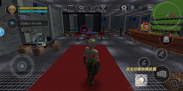 3、领取任务后,再根据红圈的指引,前往对应地点,点击右下角切换按钮可以更换所持武器