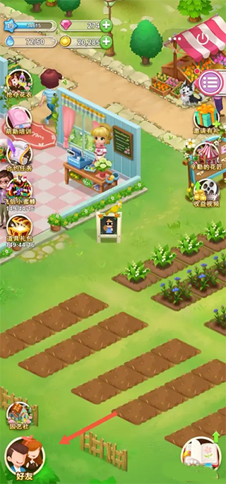 点击界面下方的好友列表,可以继续去不同的好友花田摘花。