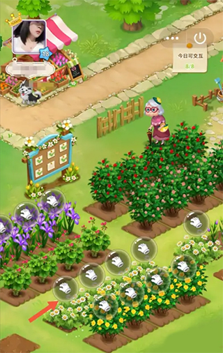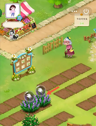 来到好友的花田,点击有手套标志的的地方,摘取鲜花。