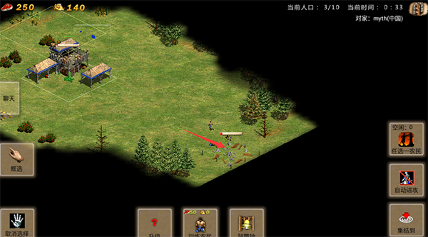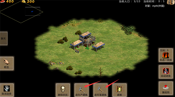 3、选择好生产建筑和军事建筑后,让农民过去建筑。