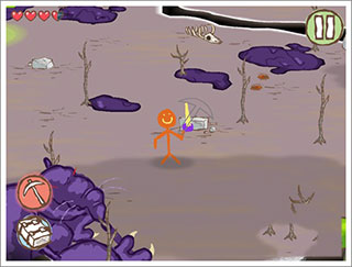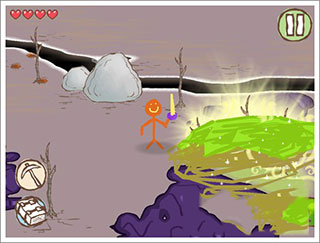 首先初入冒险世界的你对这里的一切都是一无所知的,因此有必要为一些新手玩家介绍一些注意事项1、进入游戏后,玩家可以看到我们身处一个由符文和石头、小花组成的阵法中,此阵法是你复活的位置,也就类似于游戏中的重生点,到达一定的进度以后都会出现类似的重生点 2、蓝紫色的熔浆的位置时会对火柴人造成伤害的,前往别靠近