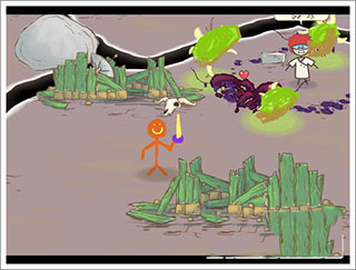 9、继续前进会出现第二只大老鼠怪物,同样一边画树叶,一边躲避即可消灭老鼠,救出第二个人火柴人