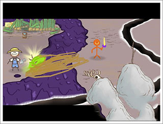 8、剧情触发后要做的就是救出被困的火柴人,首先是要救拿着水壶的大胡子老伯,在老伯站的位置的树干画上树叶即可