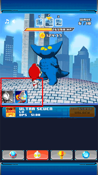 3、左下角的圆形图标就是奥特曼的技能选项,点击一下奥特曼就会进化。