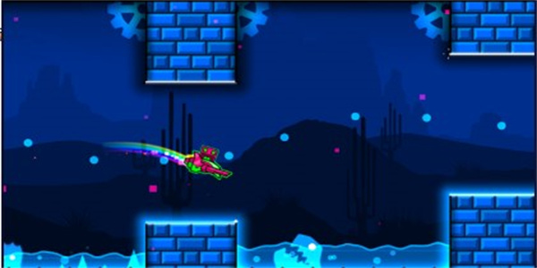 游戏中的跳跃也是要有技巧的,过早或者过完都会让你面临着撞墙危险,因此要找到合适的起跳时间。在这里,小编的方法是这样的,在心里默数,在靠近障碍物的前一秒让小方块跳跃,这样就能很好的躲掉障碍物。因此,在此小编觉得玩这款游戏需要在一个安静的环境下进行,便于你大概的计算方块合适的跳跃时间。