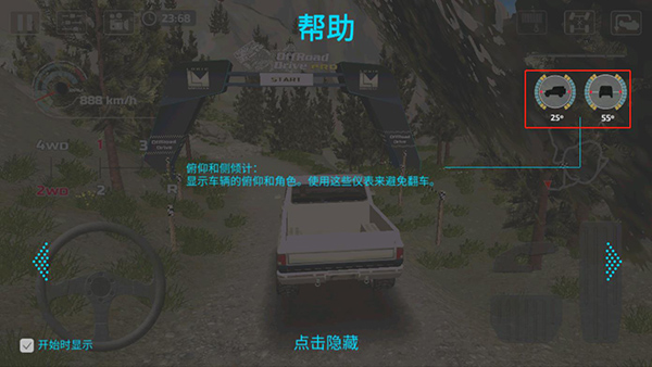 8、点击俯仰和侧倾计,可以显示车辆的俯仰和角色,可以避免翻车;