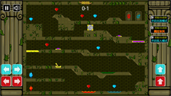 3、不同颜色的角色只能收集相应颜色的宝石以及进入相应颜色的门。