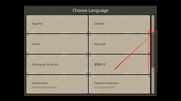 1、初次进入游戏我们需要手动选择语言,下滑找到“繁体中文”字样点击即可切换